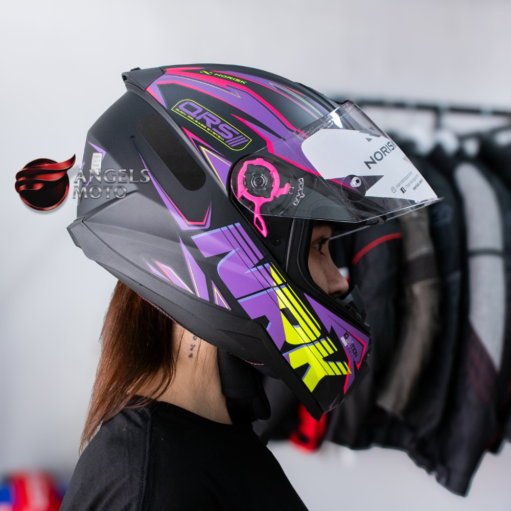 O Novo Capacete Norisk Fab FF802 Razor Ghost Matte Black Purple feito para quem passa muito tempo com a moto e precisa de um capacete leve e compacto, ou para motociclistas que buscam o máximo de conforto na hora da pilotagem. A NORISK CAPACETES apresenta o novo RAZOR, um capacete que promete tornar os seus momentos ainda mais especiais.