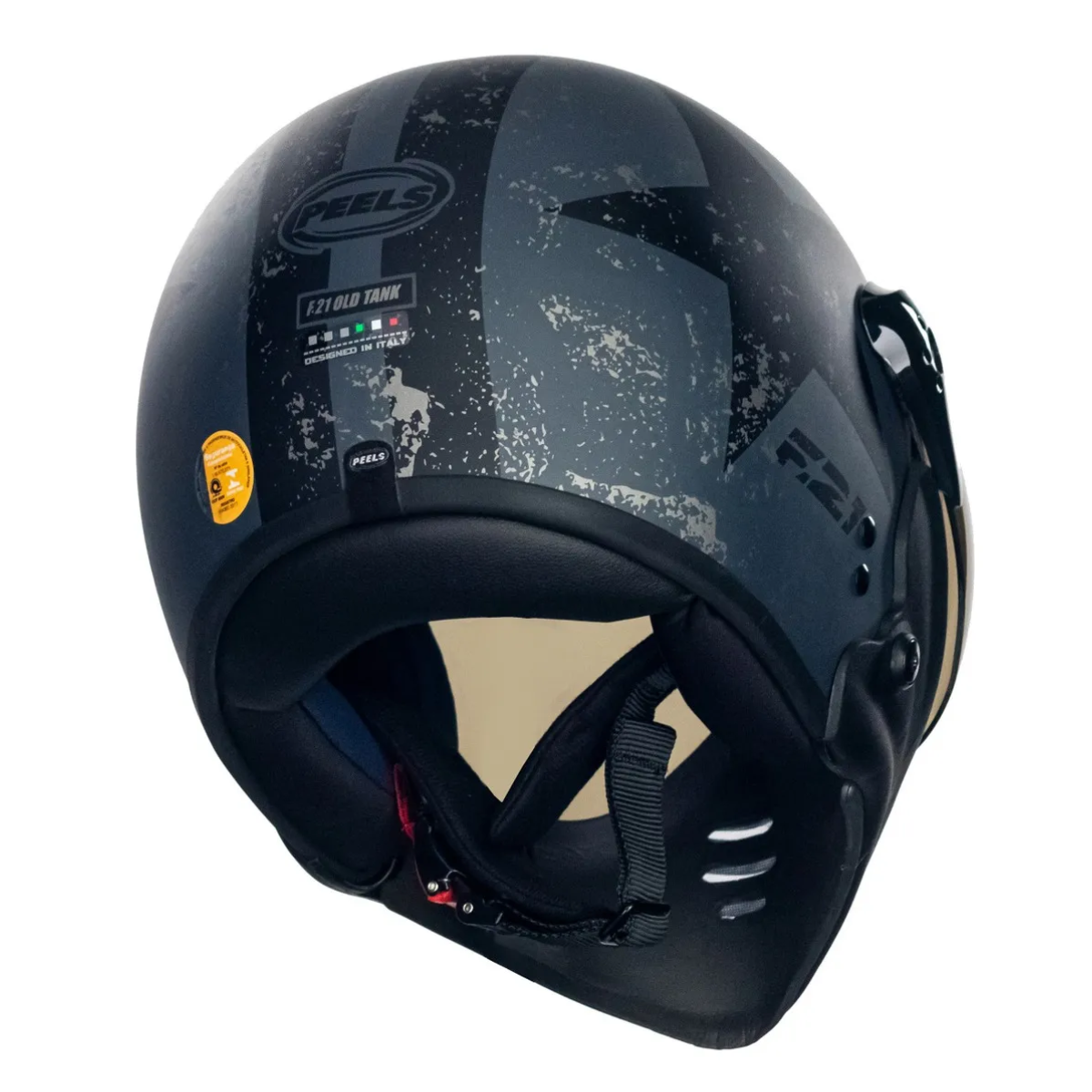 O Capacete Peels F21 Old Tank Preto Chumbo Fosco Preto é um modelo aberto urbano com a opção da queixeira removível, com muito estilo e design único ao melhor estilo aviador.