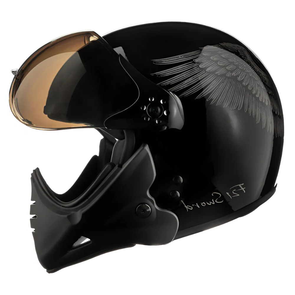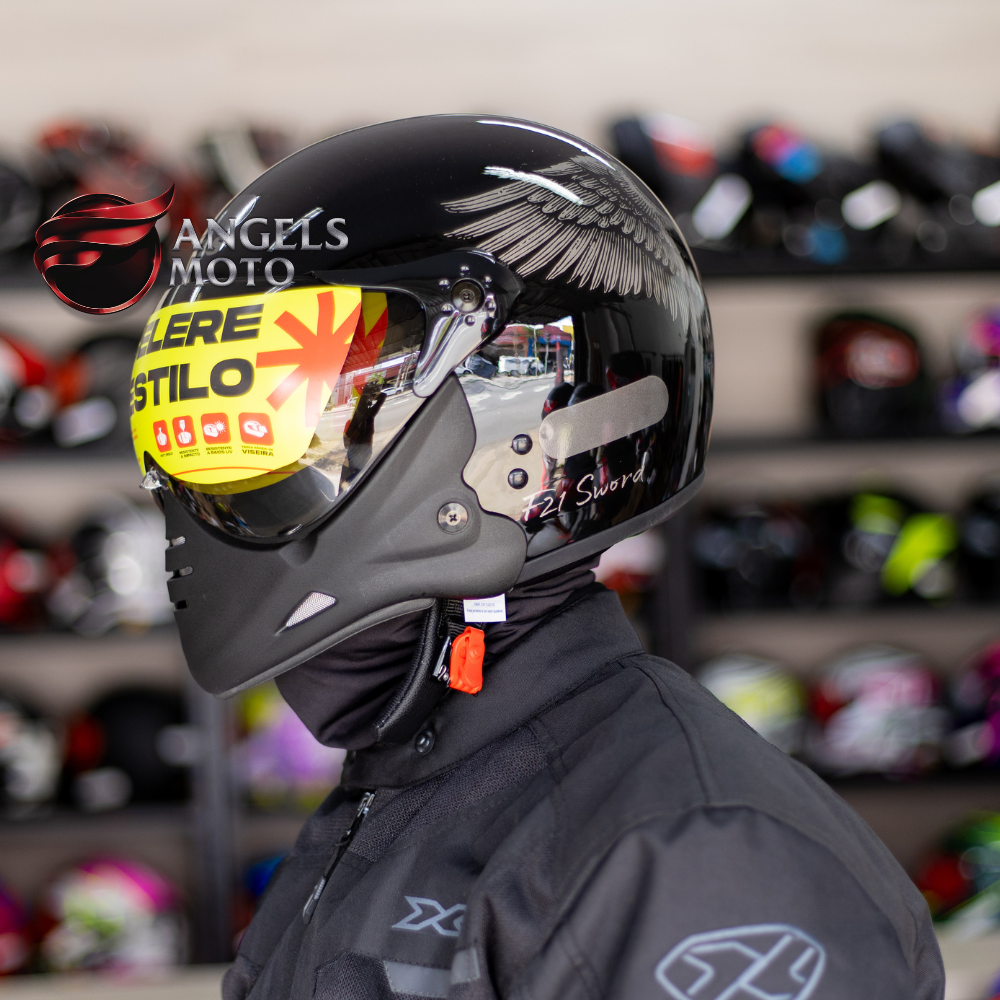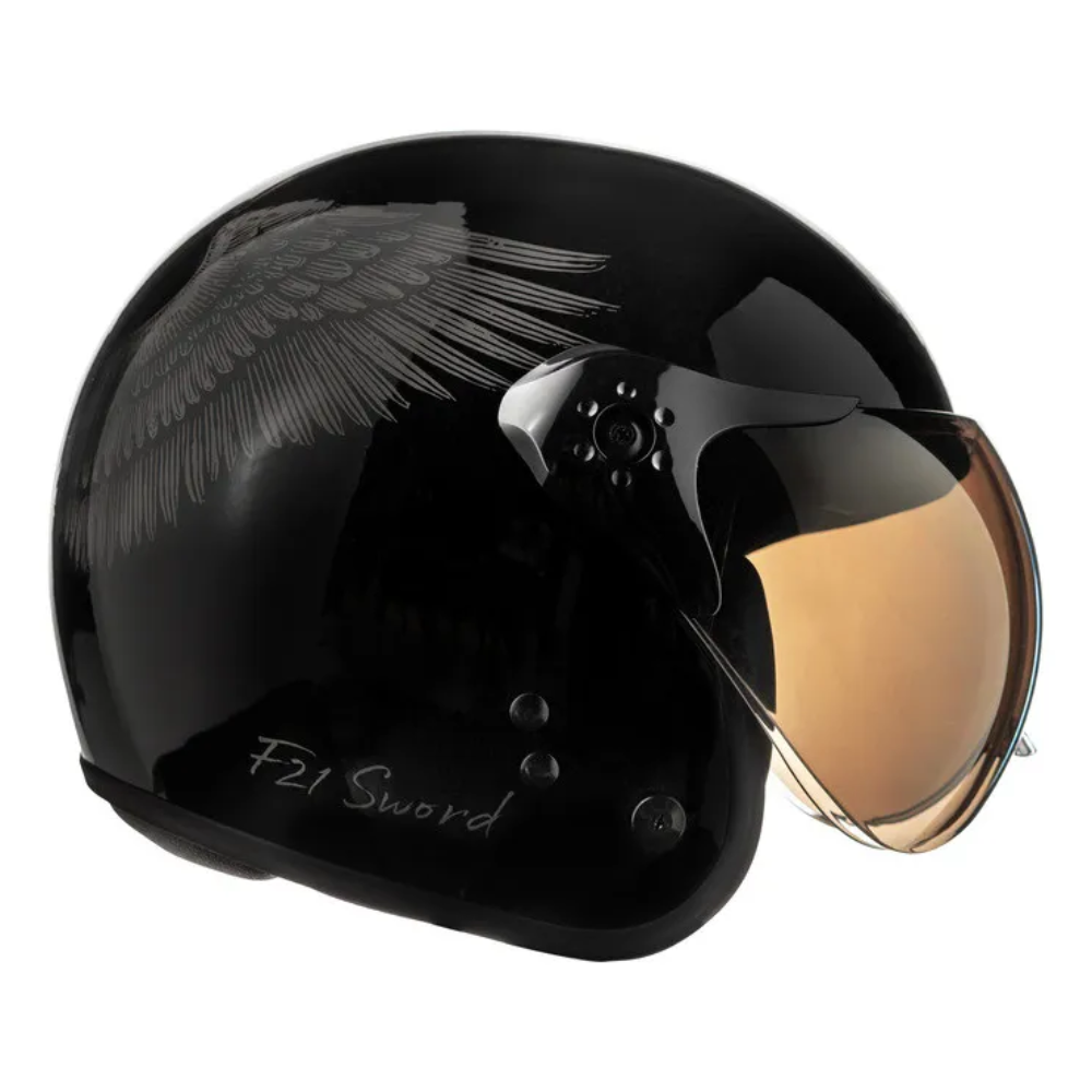 O Capacete Peels F21 Sword Preto Brilhante Grafite é um modelo aberto urbano com a opção da queixeira removível, com muito estilo e design único ao melhor estilo aviador.